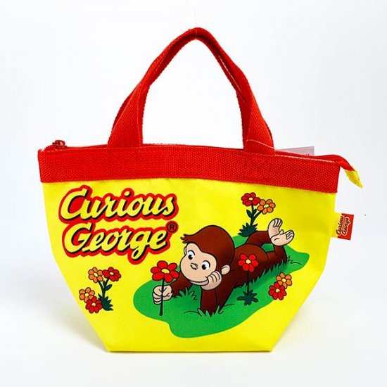 お弁当を持ち運ぶ時に便利な、保冷バッグもご用意しております。ジョージがお花を眺めているキュートなデザインが魅力的。持っているだけで気分も上がりそう♪