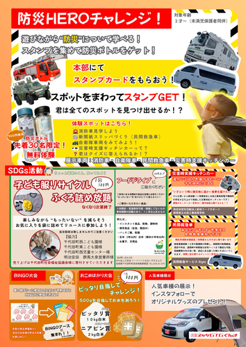 内容: 指定スポットを巡ってクイズに答えたり体験をして、スタンプを集めて《防災HEROになろう!》