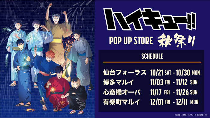 アニメ「ハイキュー!!」の描き下ろし浴衣ビジュアルを使用した、ポップアップイベント「ハイキュー!! POP UP STORE 秋祭り」が10月21日から仙台を皮切りに全国4都市を巡回。