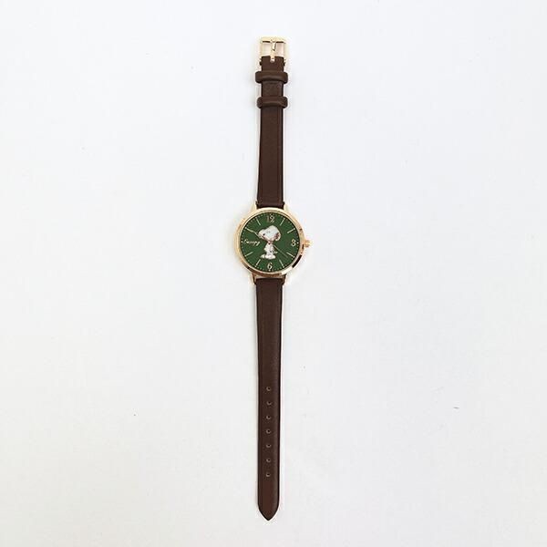 続いてご紹介するスヌーピーの腕時計は、スヌーピーとウッドストックの絵が描かれた、落ち着いた色味がシックなこちらです。