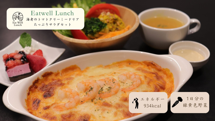 濃厚な海老ドリアと一日分の緑黄色野菜が摂れるからだにやさしいメニューです。