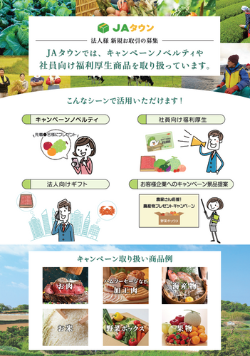 「JAタウン」のブースでは、各社の従業員に方々への福利厚生の一環としてJAタウンを活用した事例や、キャンペーンノベルティ、お中元・お歳暮などの法人向けギフトへの活用、お客様企業へのキャンペーン景品提案などの事例をご提案します。