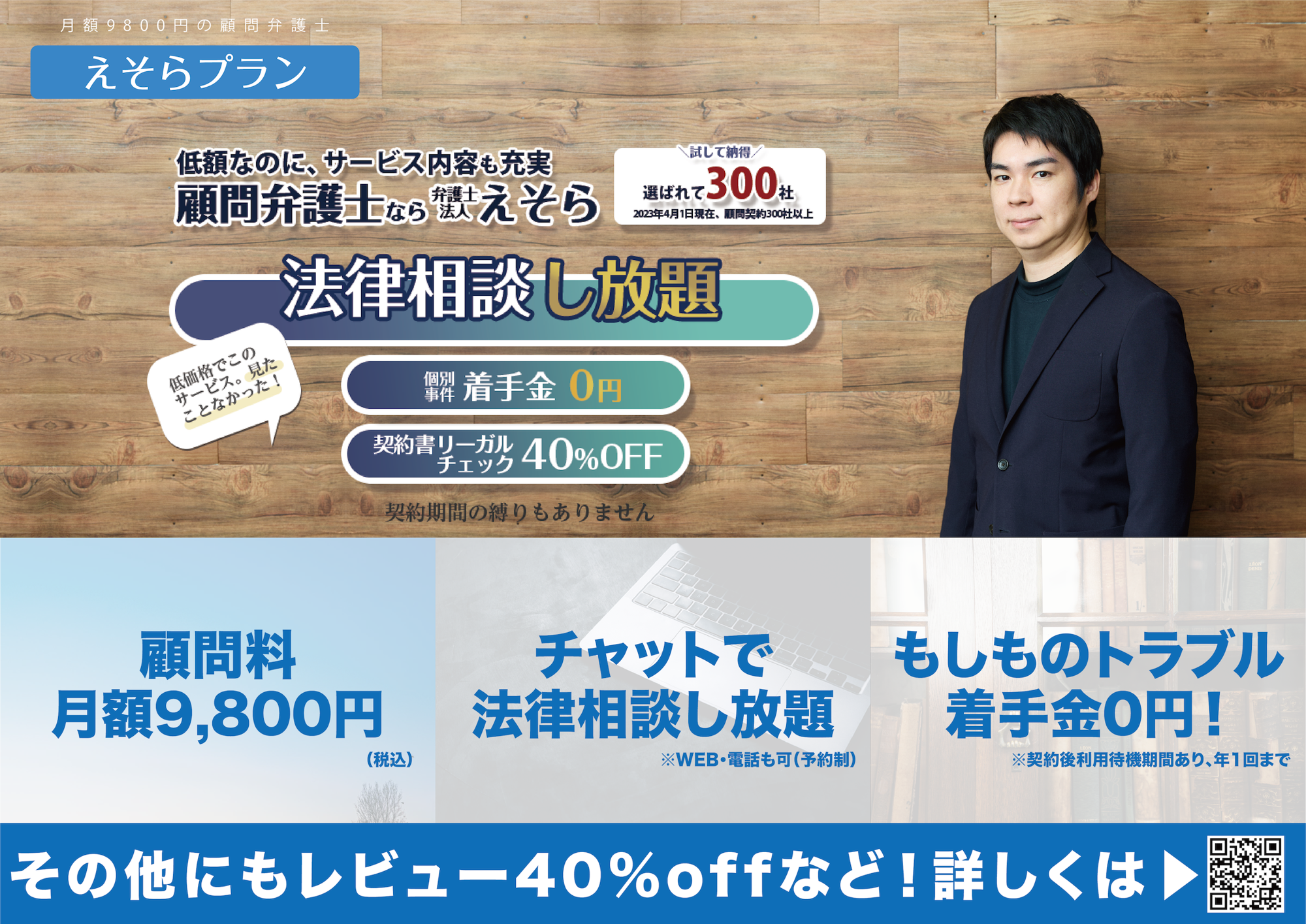 「顧問弁護士契約えそらプラン」の詳細はこちら。