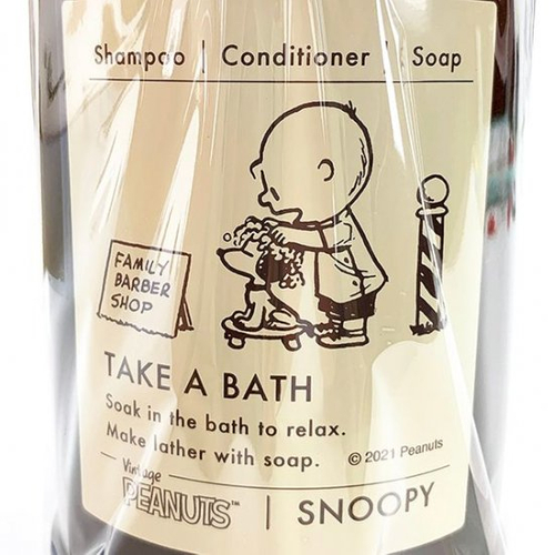 こちらは色違いのブラウンです。スヌーピーがチャーリーブラウンにシャンプーをして貰っている、楽しいデザインですよね。