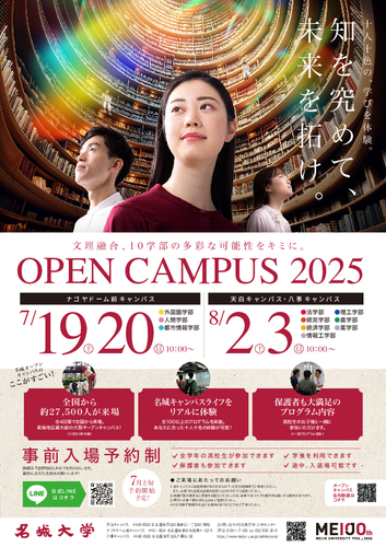 オープンキャンパス2025の特設サイトが名城大学入試情報サイト「Meijo Navi」にて公開されました。