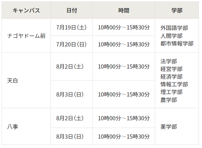 ※予約に関する詳細は7月上旬に特設サイトおよび名城大学公式LINEアカウントにてご案内予定です。