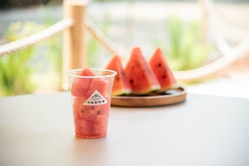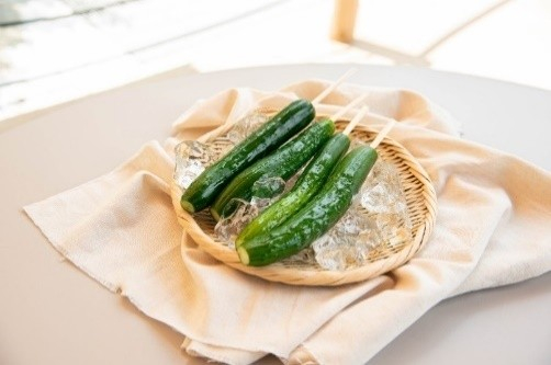 冷えたスイカ、きゅうりの一本漬け、地元素材を使った