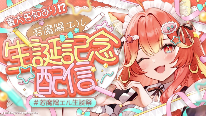 **株式会社ClaN Entertainment(本社:東京都港区 代表取締役社⻑:⼤井 基⾏、以下ClaN)は、株式会社サンリオ(本社:東京都品川区)と共同で行うVTuberプロジェクト「にゃんたじあ!」に所属する「若魔陽エル」 が11月5日に誕生日を迎えたことを記念し、誕生日グッズの販売を行います。**