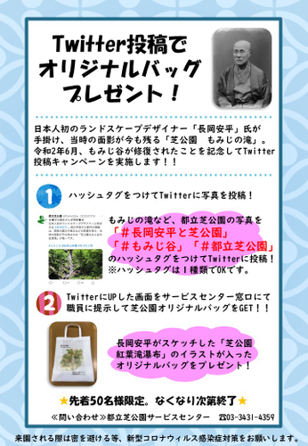 【修復完了記念①】Twitter投稿で オリジナルバッグ プレゼント! 「芝公園紅葉滝瀑布」のイラスト入オリジナルバッグをプレゼント