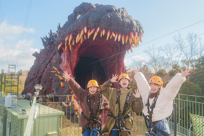 いよいよ今週末より!大迫力のゴジラに向かって“大滑空”女子旅ジップライン! 「春のペアジップライン 〜ゴジラを監視!記録写真をUPせよ!~」