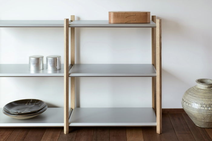 単体で壁面へ添わせて、2つの背面同士を合わせて、使い手のアレンジによって機能は自在に変化します。親和性の高いカラーリングで、様々な組み合わせに対応します。