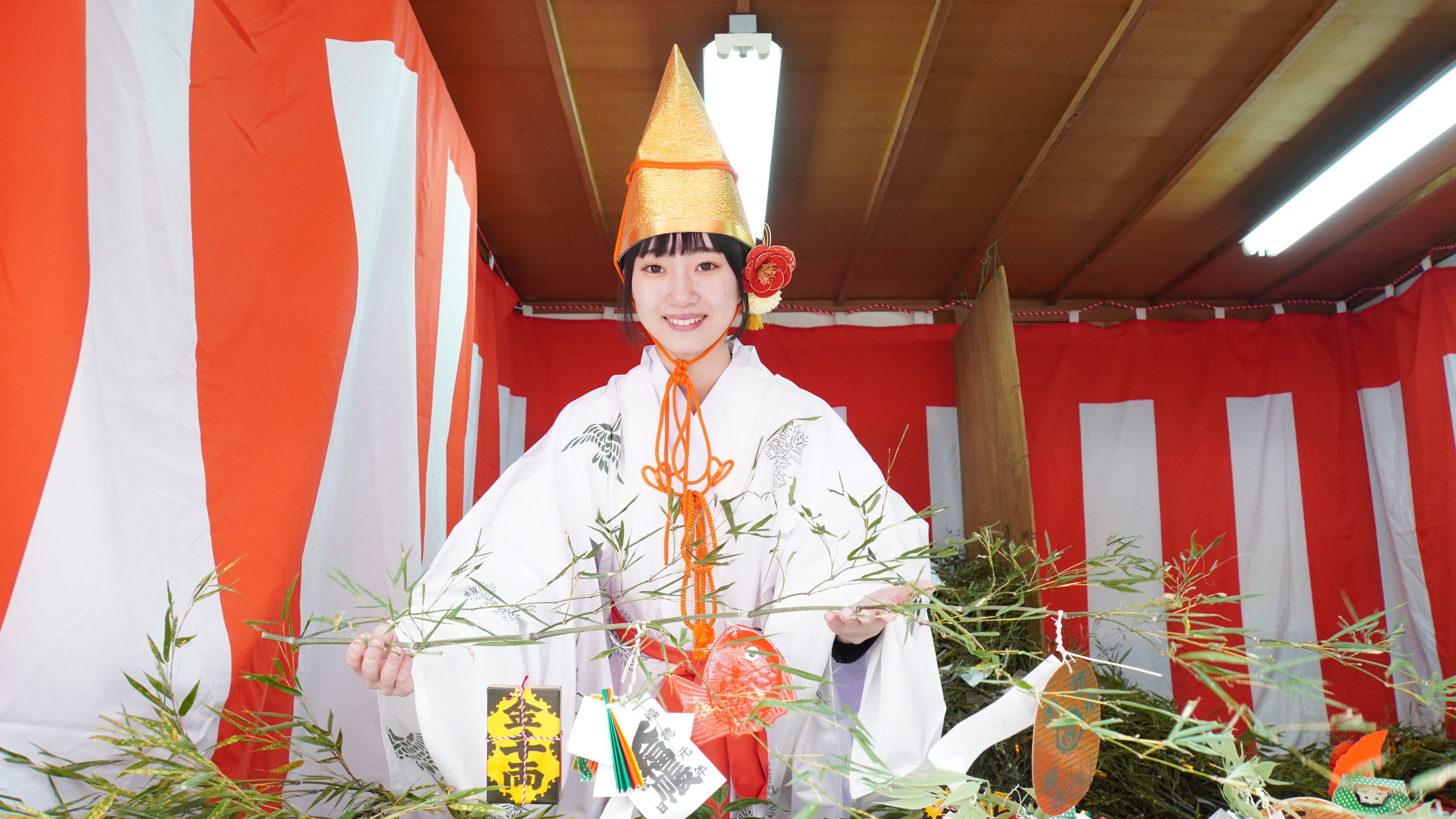 大阪国際大学・大阪国際大学短期大学部(大阪府守口市 学長宮本郁夫)のボランティアバンクの学生8名が、商売繫盛 笹持って来い!新春の伝統行事である「ねや川 戎大祭」に、福娘として笑顔とおもてなしの心で参拝者のみなさまに福をお届けしました。