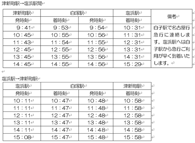 ・運転区間:白塚駅⇔近鉄四日市駅間