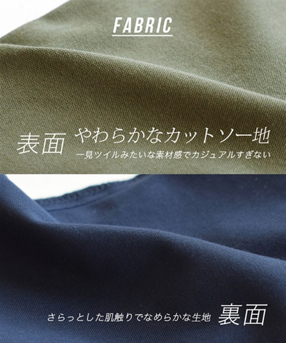 使用した生地は、やわらかく肌触りがなめらかさでありながらも、見た目はツイル素材のようであることから毎日のコーディネートに違和感なくお使いいただけます。