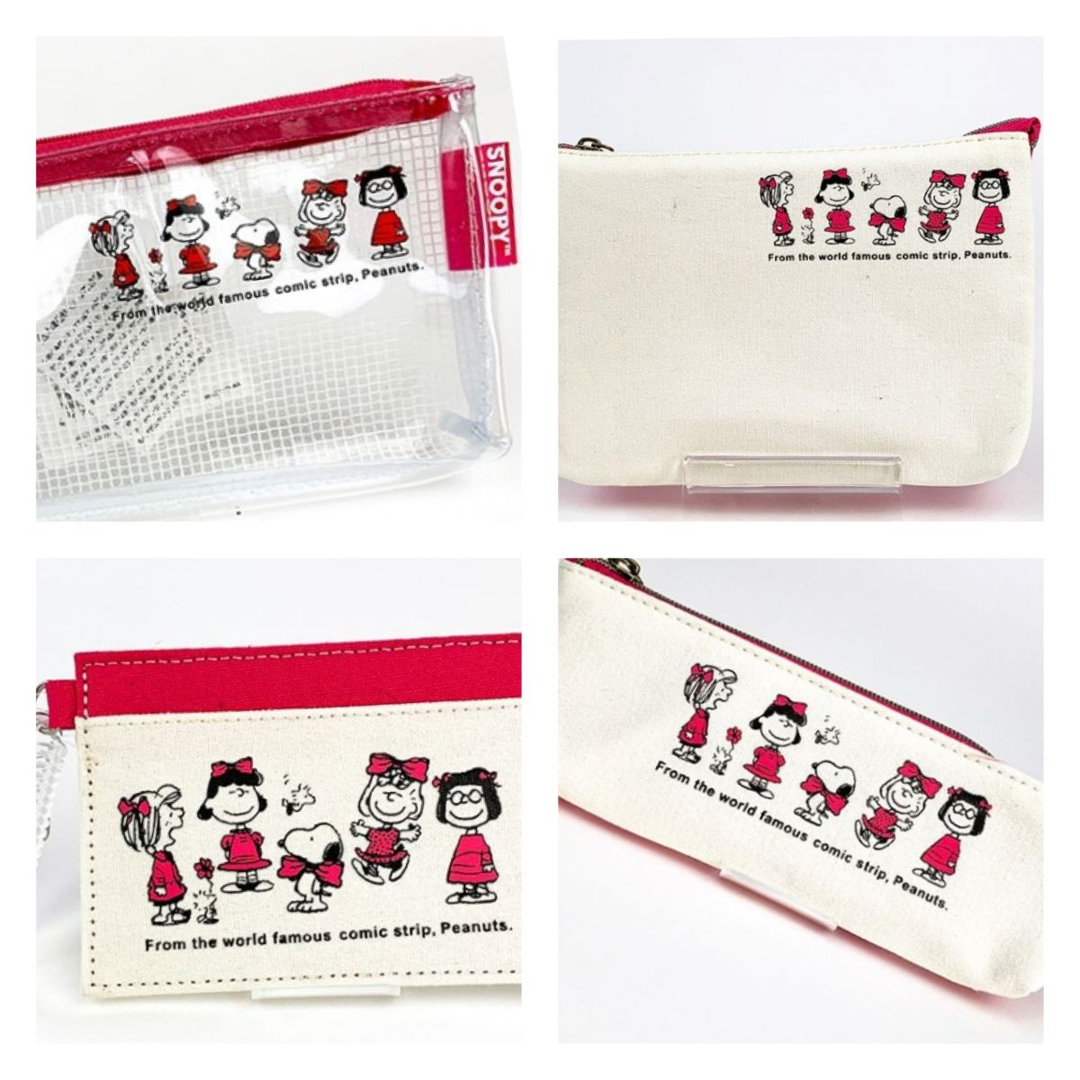 スヌーピー&ガールズのポーチは、リボンでおめかしするスヌーピーと女の子たちがキュート!リボンの付け方もそれぞれ似合っていてかわいいですね♡