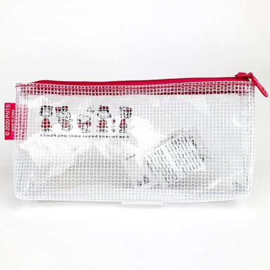 定番人気のクリアポーチもラインナップ!ファスナーやイラストのピンクがメリハリのあるいいアクセントになっています。