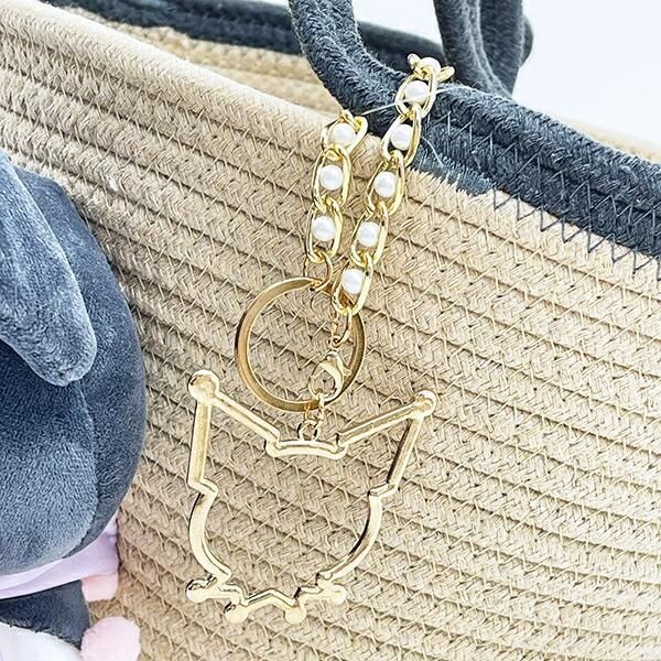 かご風のおしゃれな見た目にキャラクターのぬいぐるみが存在感抜群すぎます。かばんにはフェイス型チャームもついているのがうれしいポイントです。