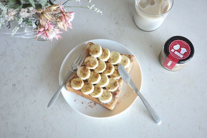 作り方:パンを焼く → 福みるくを塗る → バナナをのせシナモンをふる