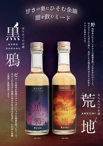 株式会社金市商店(本社:京都市中京区、代表取締役:市川拓三郎)は、2025年9月から3か月連続で異なる蜂蜜を使用する新作の蜂蜜酒(ミード)を発売。第一弾の自社醸造所である「京都蜂蜜酒醸造所」で仕込んだ『The MEAD くり』(9月9日発売)に続く第二弾は、自社が運営する「蜂蜜専門店ミールミィ」で長年展開している「はちみつのお酒シリーズ」からのハロウィンシーズンにぴったりな新作「はちみつのお酒 荒地(アレチ)」「はちみつのお酒 黒鴉(クロガラス)」の2種類を10月10日(金)に新発売。
