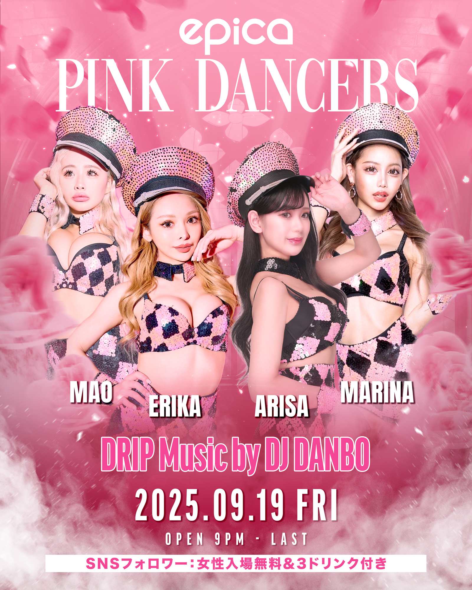 株式会社S.E.Q.UENCE(代表取締役社長:高田 一司)が運営する「エピカ・沖縄」(所在地:沖縄県那覇市松山1-5-1 ナムラプラザビル3F)は、2025年9月19日(金) & 20日(土)の 2日間、PINK DANCERSからTHE PINK TOKYOメンバー出演が決定しました。