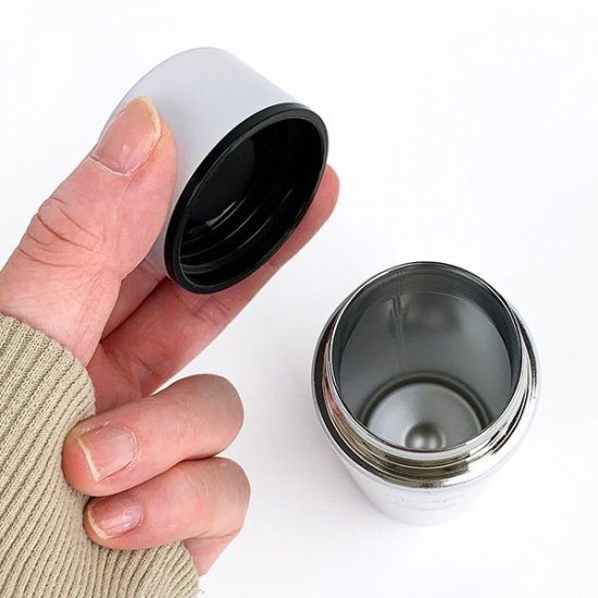 143×45mmサイズで、120ml容量のステンレス製です。