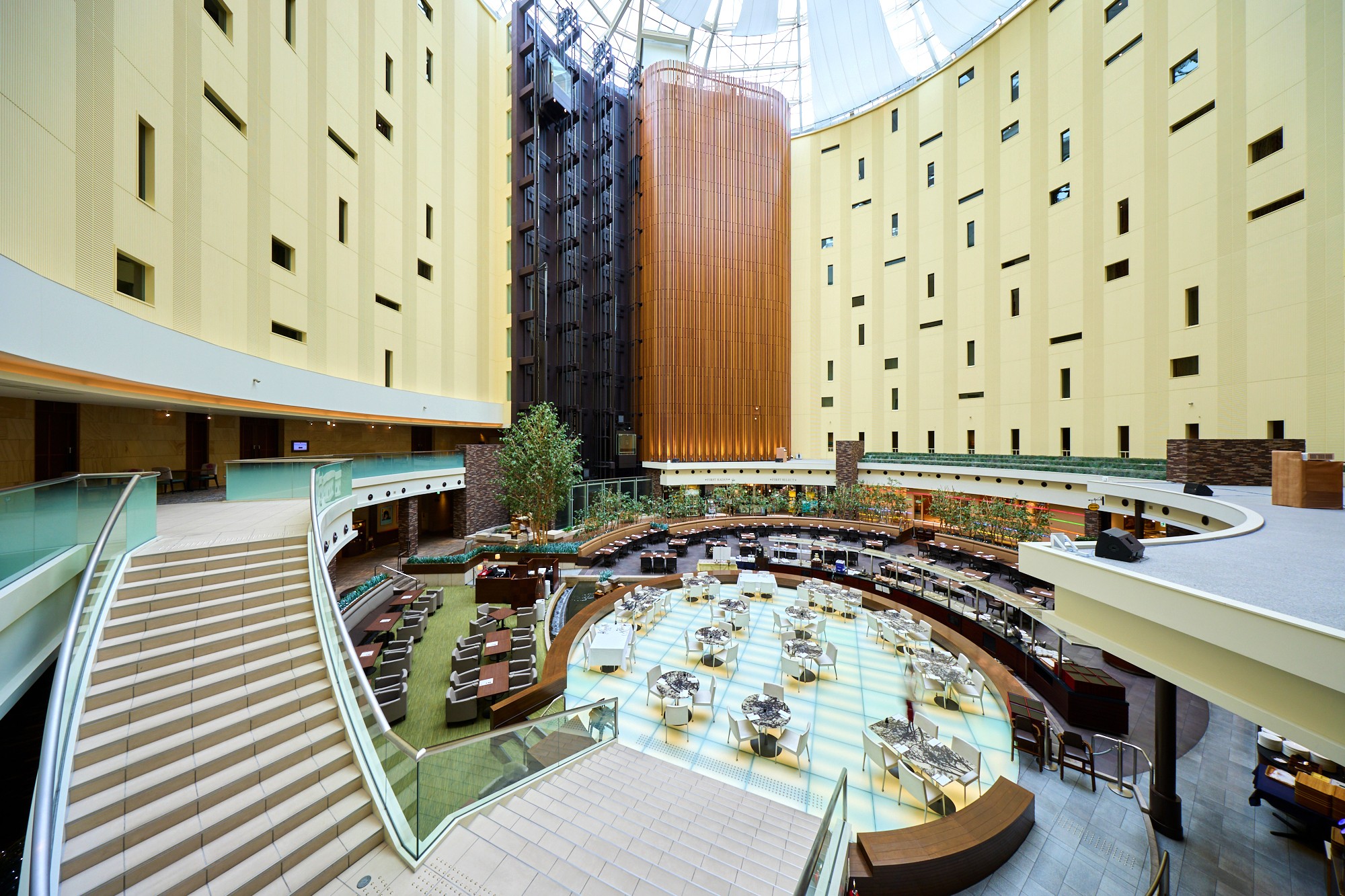 会場は、11層吹き抜けのアトリウムに位置するレストラン ファインテラス。自然と調和した雰囲気の中で、お子様から大人までご一緒にお楽しみいただけます。