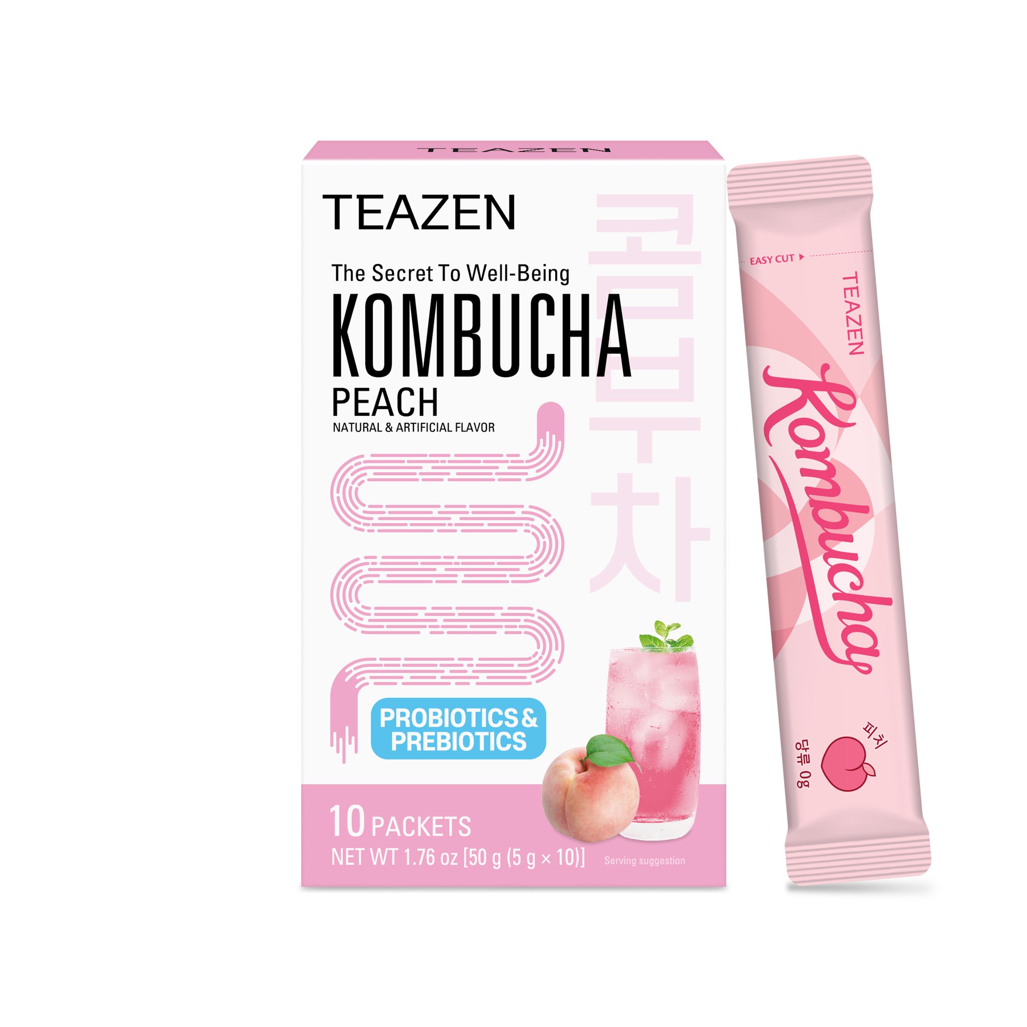 「TEAZEN(ティーゼン)」は自社の発酵と茶葉を粉末にする技術により、欧米で話題になっていたコンブチャの粉末化に成功。フリーズドライした粉末のコンブチャに12種類の乳酸菌を加え、微炭酸のフルーツ味で飲みやすく仕上げました。