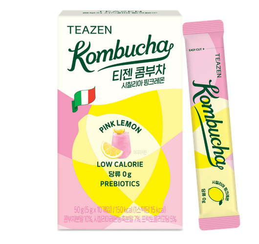 TEAZENコンブチャの新フレーバー。レモンの産地で有名なシチリア産のレモンを使用し天然原料のビーツで淡いピンク色をしたシチリアピンクレモン味。レモネードのような後味が爽やかなお味です。