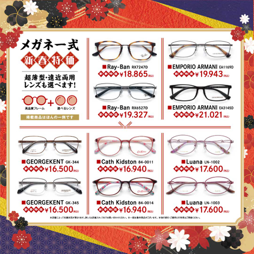 キャンペーン内容:新春スピードくじ、メガネ一式新春特価