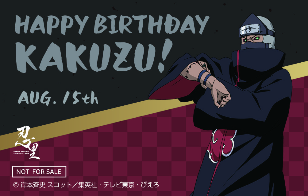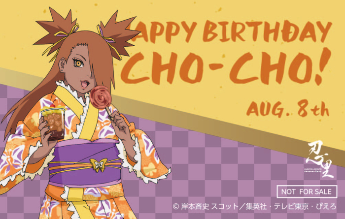 本イベントでは、これまでに忍里でイベントを行ってきたキャラクターたちの誕生日をお祝いする、忍里オリジナルのバースデーカードをご用意いたします。8月は「綱手」「角都」「秋道チョウチョウ」をお祝いします!