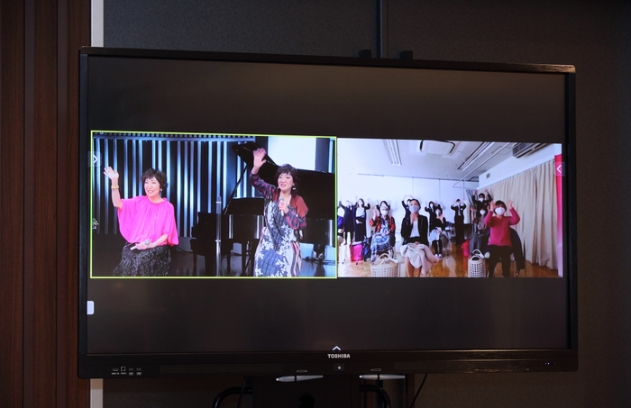 アートネイチャー初となるオンラインイベントでは、当社CMキャラクターの森山良子さん・清水ミチコさんによるトーク&ライブが行われる都内スタジオと、ウィッグ展示・試着会が開催されている全国4会場(東武百貨店船橋店・ミナカ小田原・あべのハルカス近鉄本店・大丸京都店)をオンラインで結び、中継が行われました。