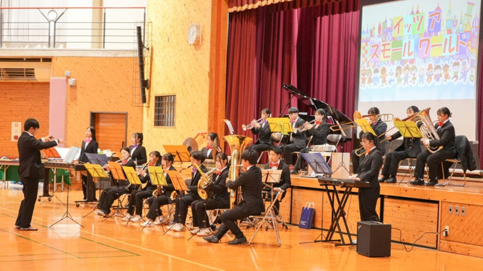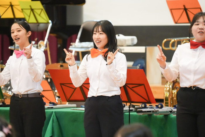 後半の器楽合奏では、「小さな世界」「マツケンサンバ」「にじ」など、子どもたちに親しみのある楽曲を吹奏楽アレンジで演奏。手話を取り入れた歌唱やダンスも加わり、音楽を全身で楽しむ時間となりました。