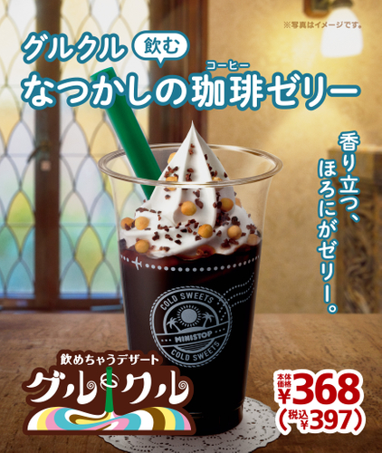 ミニストップ株式会社(本社:千葉県千葉市 代表取締役社長:藤本 明裕、以下:ミニストップ)は、「ソフトクリームの新たな価値提供」をテーマに開発した、新感覚の飲めちゃうデザート“グルクル”※1シリーズ第2弾「飲むなつかしの珈琲ゼリー」(税込価格:397円)※2を、2021年6月25日(金)より国内のミニストップ(2021年5月末現在:1,955店)にて発売します。