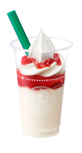 なめらかな舌触りの杏仁豆腐×果肉入りいちごソース×ソフトクリームバニラの奏でる新感覚デザートドリンク。