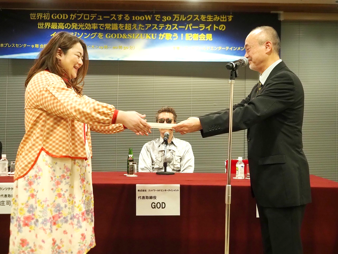 2025年1月23日、日本プレスセンター9階会見場にてGODがプロデュースする音浴特許シンガーSIZUKUの歌声認定式及び記者会見が行われました。