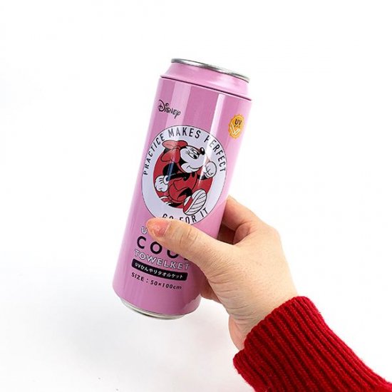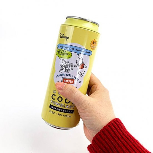 缶を開けると中から出てくるのは夏にピッタリなひんやりアイテム、ひんやりタオルケットです!パッケージがジュース缶のようになっているので、サプライズプレゼントしても喜ばれそうですね。