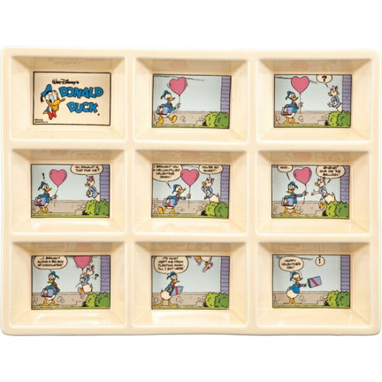 これは新しい!ひとつひとつが小さく仕切られたドナルドダックのコミックプレート。そのほかディズニーのカフェ風プレートなど
