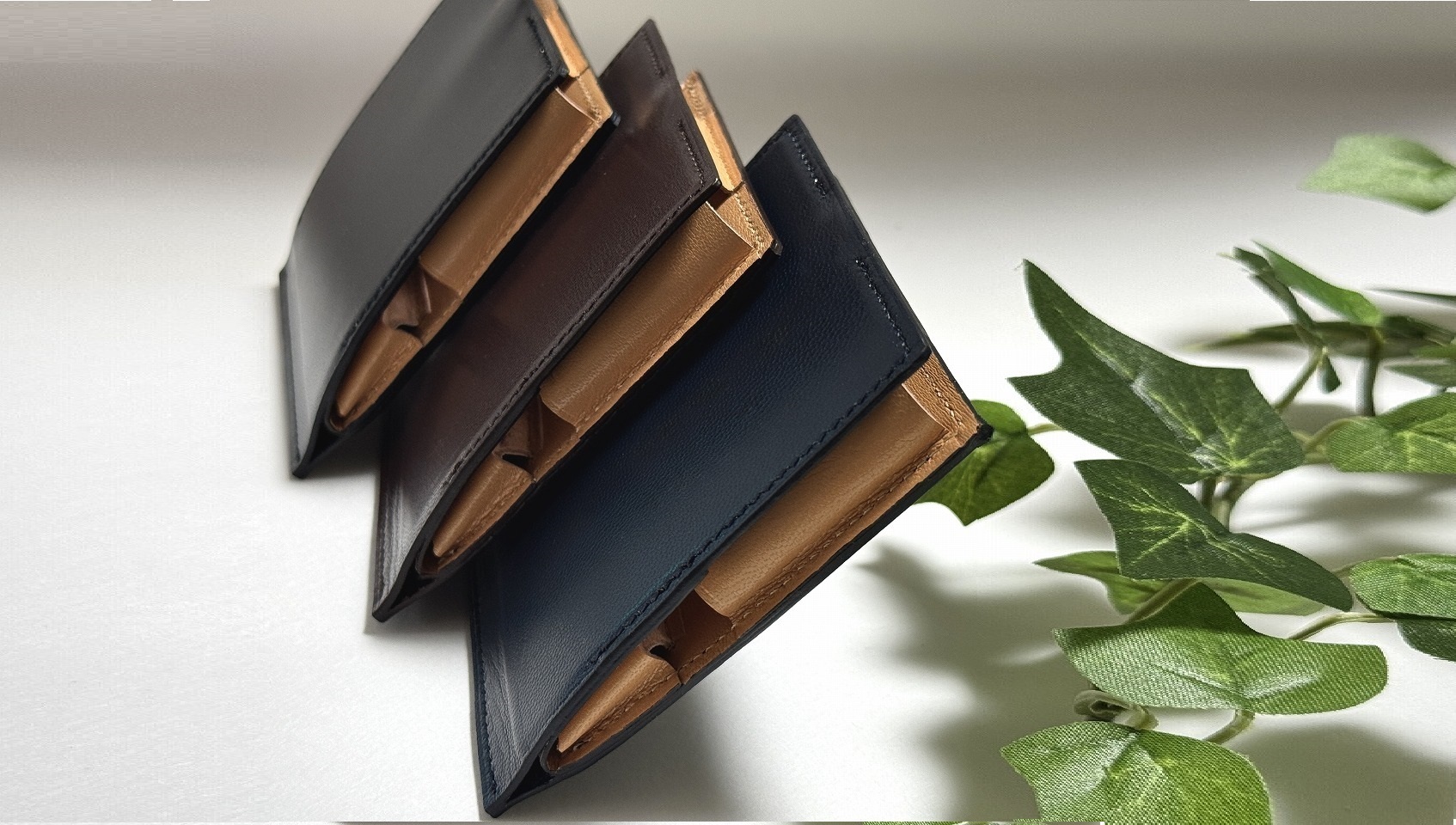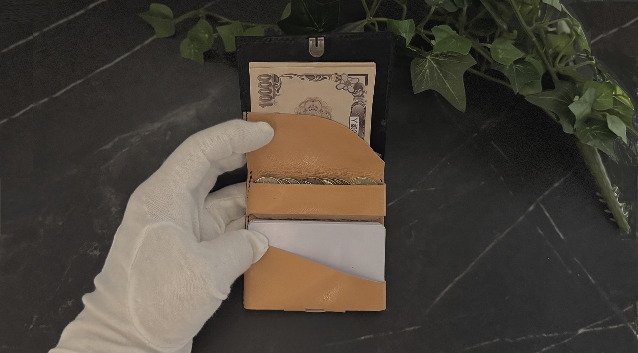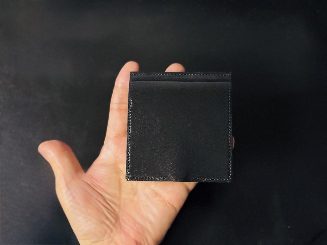 第2世代は台東区の革工房アトリエ・ヒロが製作を担い、熟練の薄作り技術と高い縫製精度で、特許構造を美しく仕上げました。