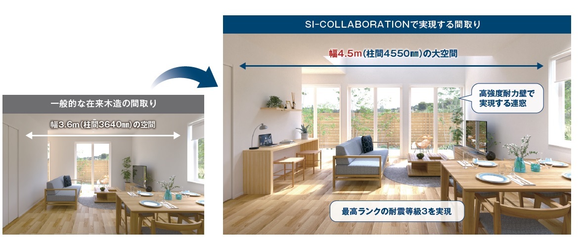 そして「インフィル」=「I」部分の外装や内装は、パートナー企業が担い、地域での高い土地仕入れ力・販売力を活かし、地域特性に沿った提案を行うなど地域密着型の顧客対応を可能とします。