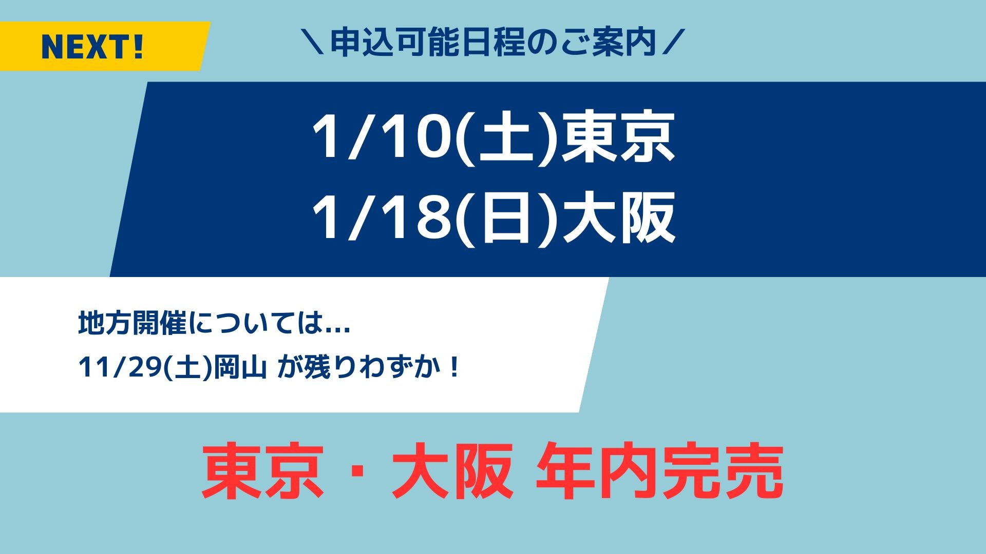 年明け以降も各地で開催予定ですが、すでに完売日程もございます。