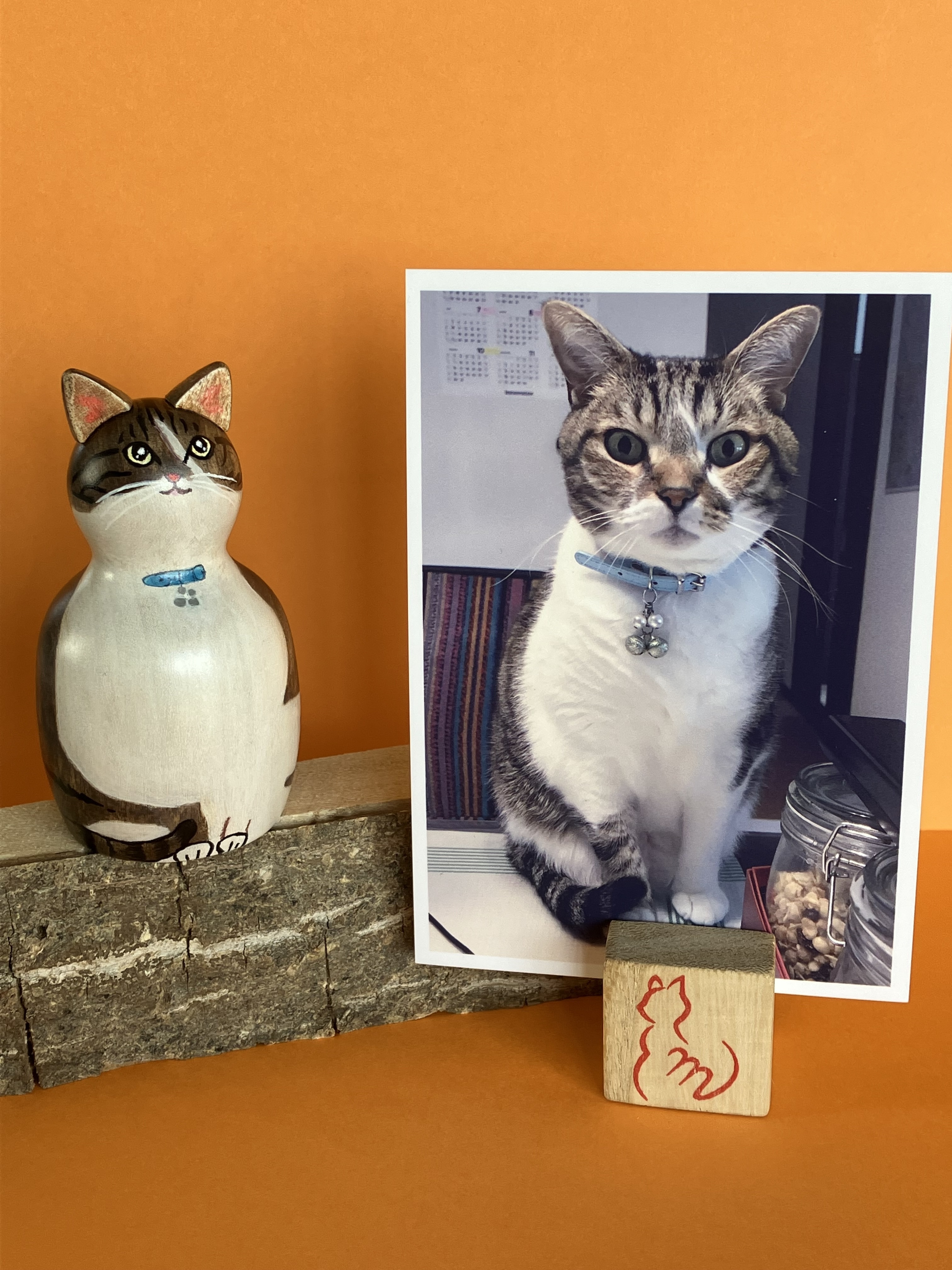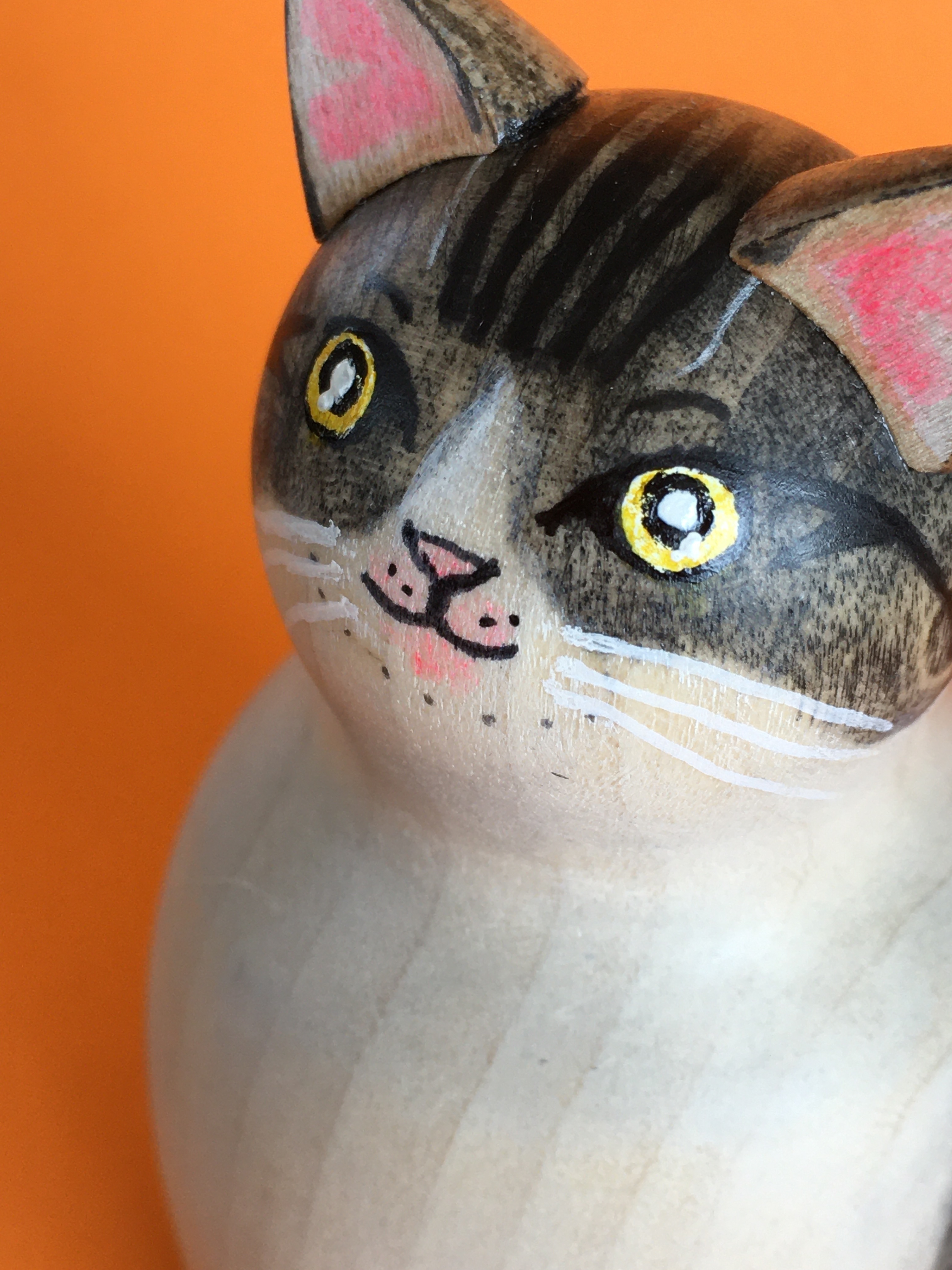 2. 木目を活かした絵付けにこだわっていて、猫の毛並みのナチュラルな質感が優れもの。