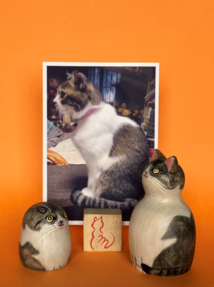 お客様から猫の写真を送ってもらい、さらに特徴を教えてもらって木地に絵付けをします。その特徴とは次のように6項目もあります。
