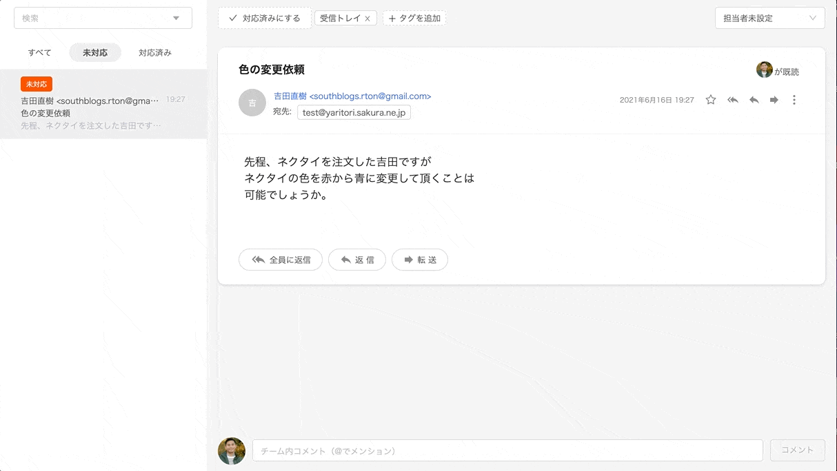 yaritoriは、複数人でのメール対応・管理を効率化するクラウド型のメール共有システムです。