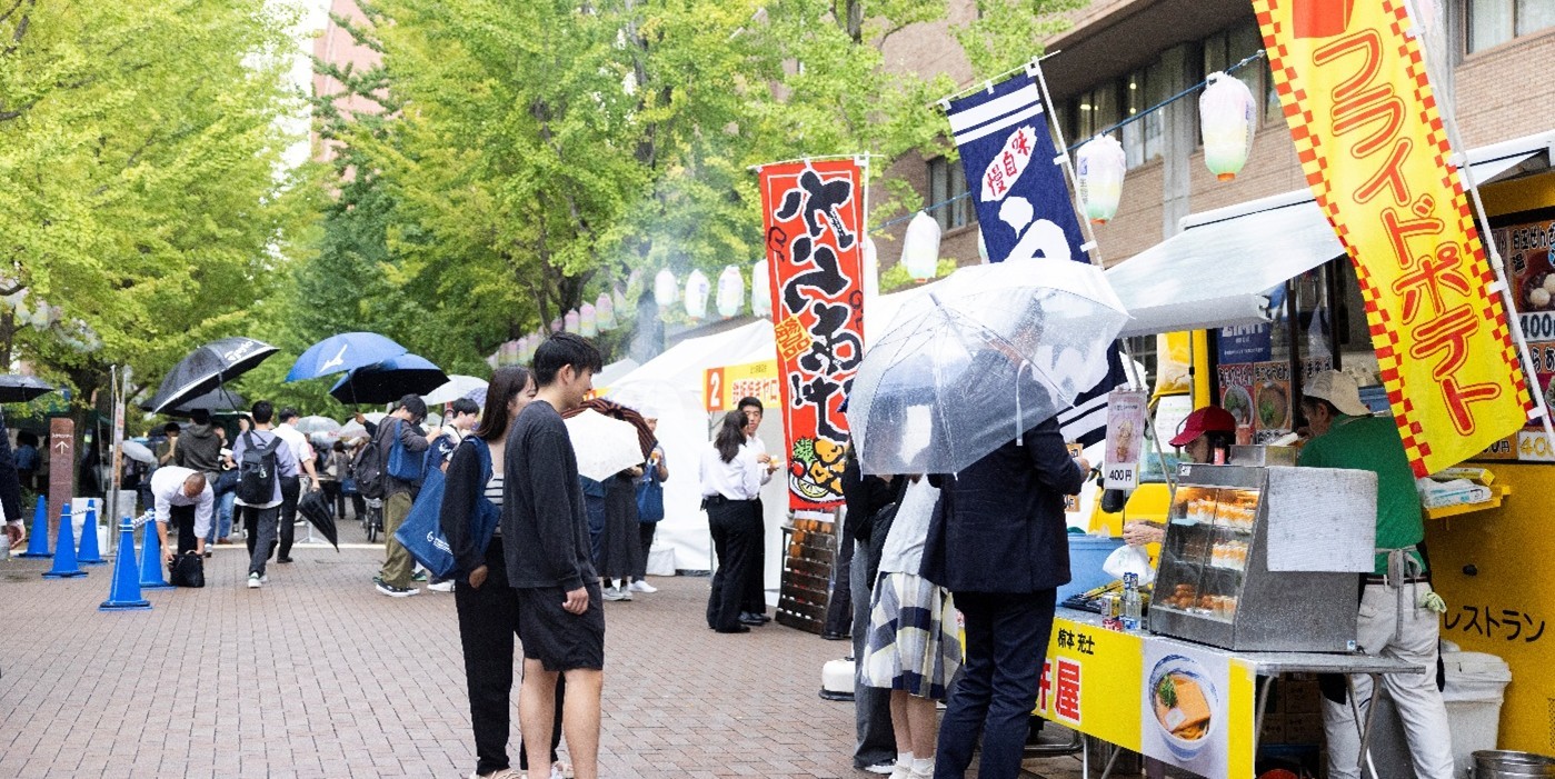 卒業生経営の飲食店や近隣の商店街の飲食店が12店舗出店してフードフェスを開催します。各店舗の自慢の一品に加え、本イベント限定の創立100周年にちなんだ100円メニューも登場します。