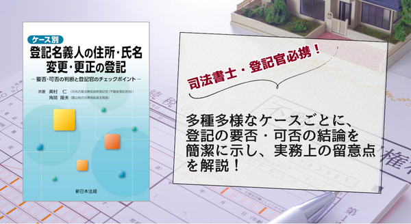 書籍名 : ケース別 登記名義人の住所・氏名 変更・更正の登記-要否・可否の判断と登記官のチェックポイント-
