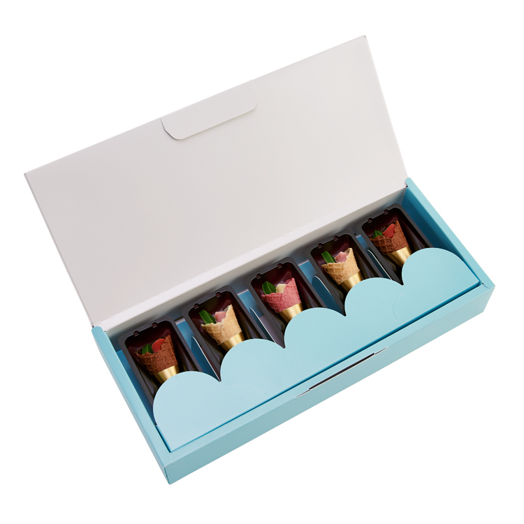 イチゴとホワイトチョコの小さな薔薇とビターチョコのつぼみ、ミルクのリーフとラズベリーのハートのショコラを限定色の小花柄の箱に詰めました。