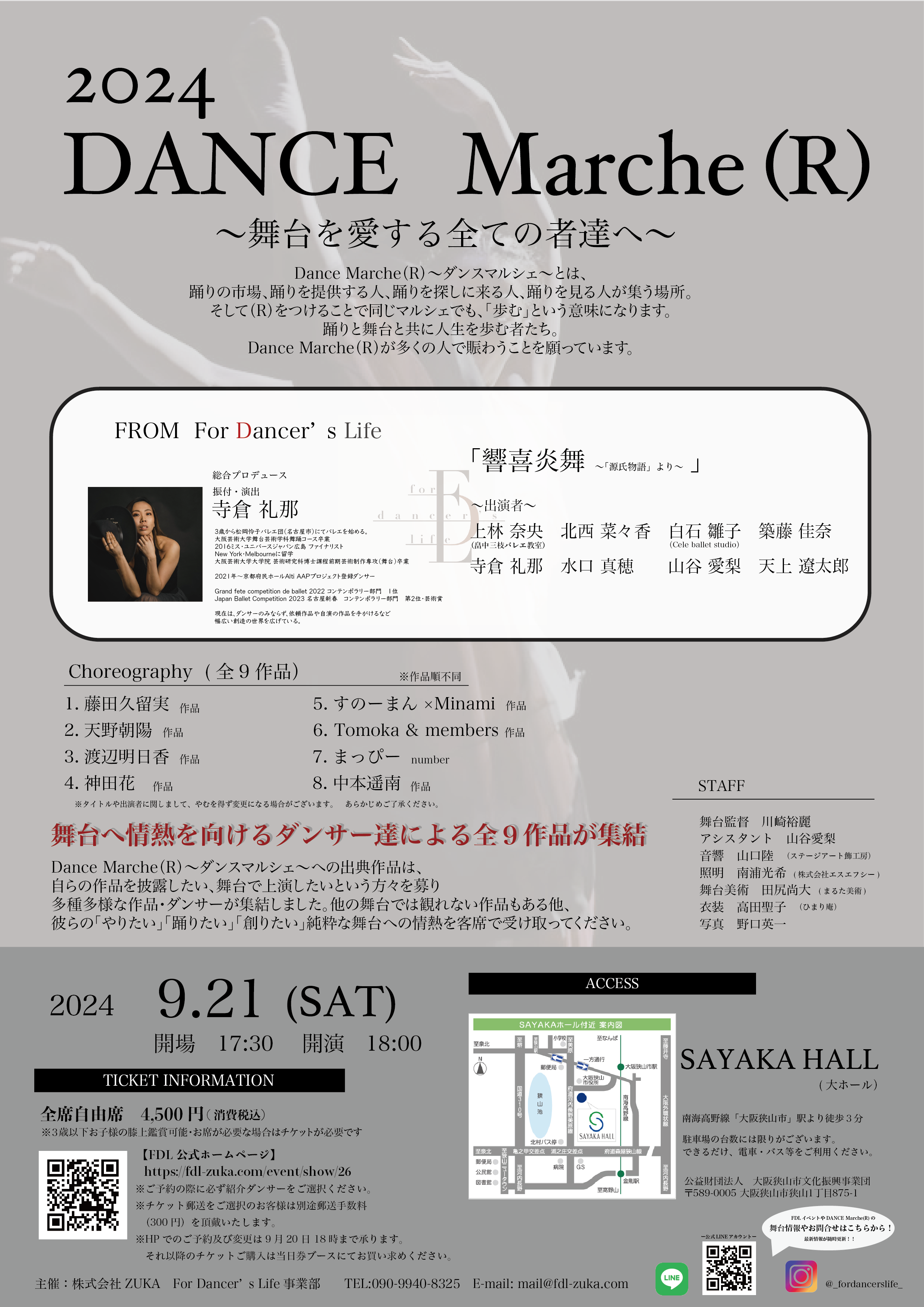 株式会社ZUKA(本社:岐阜県岐阜市、代表取締役:寺倉修)は、2024年9月21日(土曜日)、FDL(FOR DANCER'S LIFE:フォー ダンサーズ ライフ)が主催する『2024 DANCE Marche(R) ~舞台を愛する全ての者達へ~』の開催を発表しました。