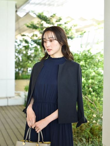 麻調で裏地が無い薄手素材のショートジャケットは、快適で清涼感溢れるアイテム。きちんとスタイルを格上げする立体的な美しいシルエットながら「マシンウォッシャブル」で、普段も気兼ねなく着回せる一枚。