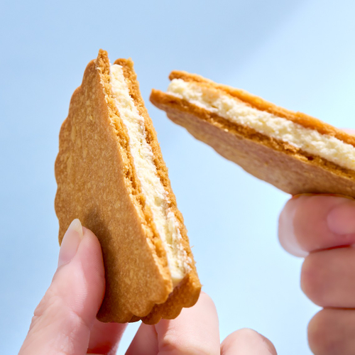 冷蔵庫で1時間ほど解凍すると、よりなめらかなバタークリームのふんわりとした食感がより引き立ち、クッキーのサクサク食感と相性抜群の美味しさ。更に数時間、冷蔵庫で解凍をするとバタークリームのコクが引き立ち、クッキーのなめらかな口どけと繊細な口当たりでより濃厚な味わいをお楽しみいただけます。