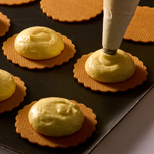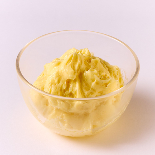 生クリームをたっぷりと使用することで口どけよく、コクのあるアイスクリームのような味わいにこだわりました。さらにホワイトチョコレートを加え、コクと濃厚な味わいを叶え、発酵バターを使用し香り高く仕上げました。この繊細な味わいを追求し、手間をかけ泡立てながら一つ一つ丁寧に絞っています。